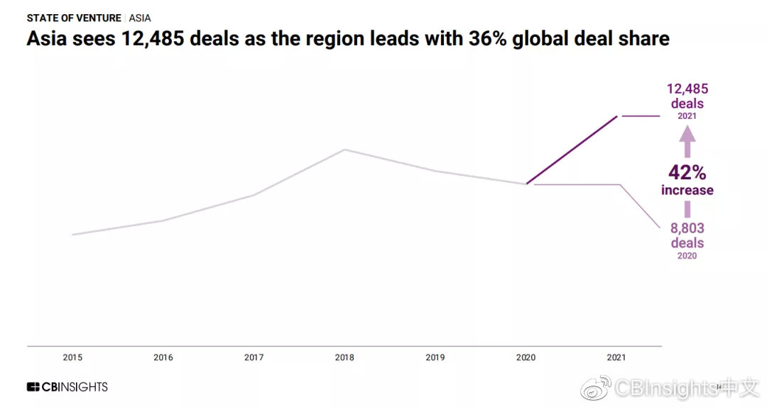 圖 | 2015 年至 2021 年亞洲地區(qū)融資數(shù)量變化(來源:CB Insights)