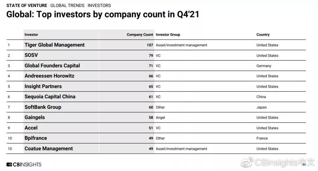 圖 | 2021 年全球最活躍的十大投資機構(gòu)(來源:CB Insights)