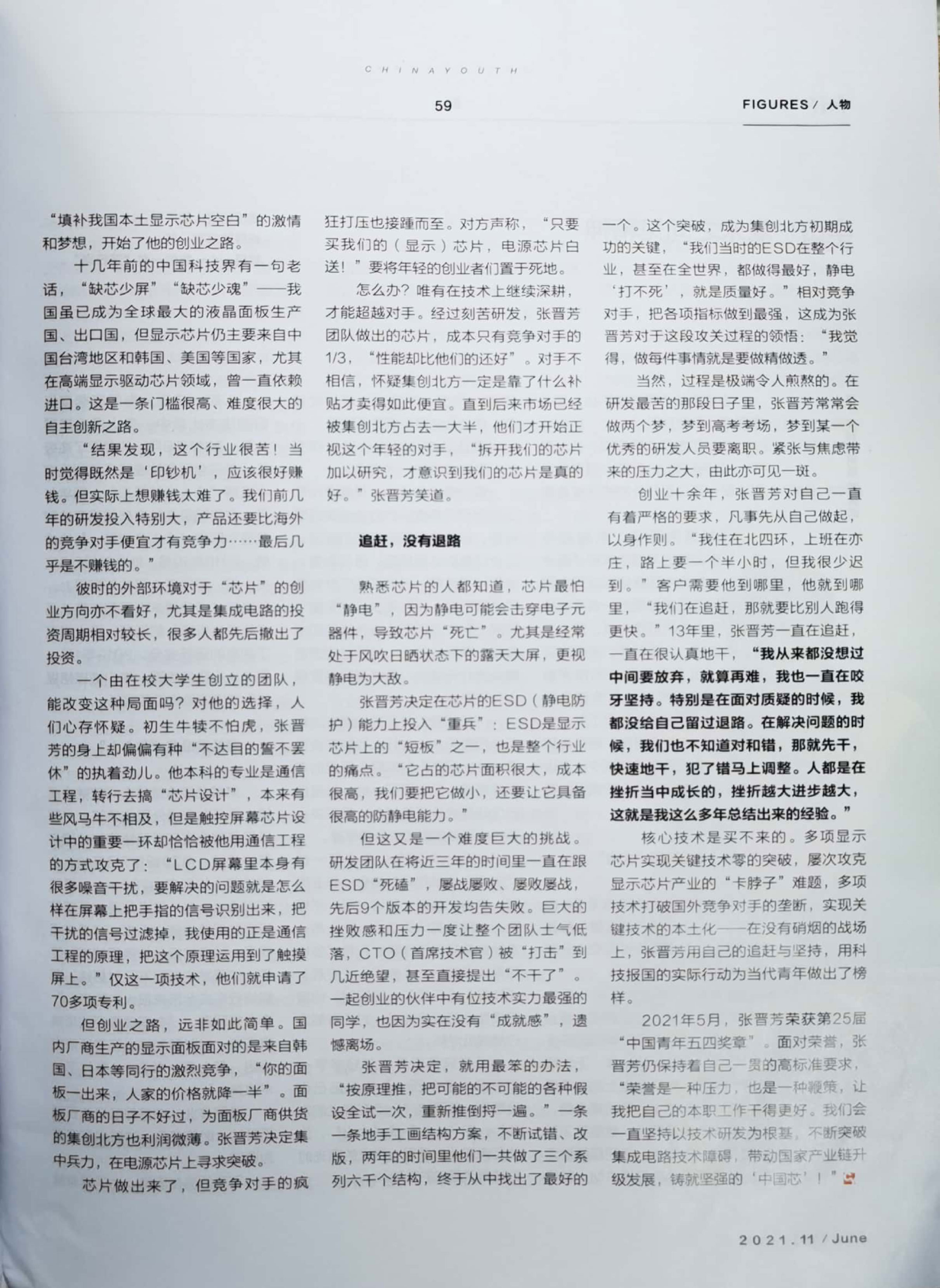 《中國(guó)青年》張晉芳:做精做透,鑄就“中國(guó)芯”
