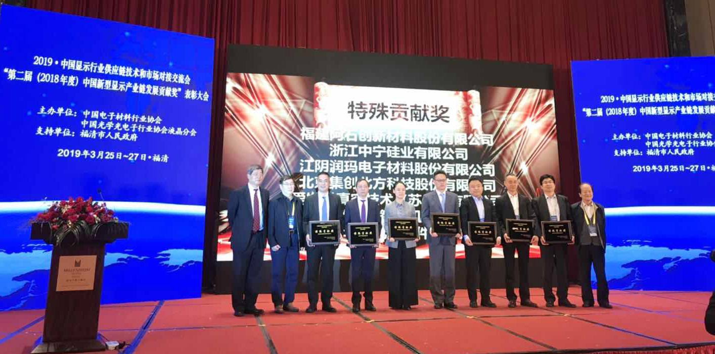 3月26日上午,2019?中國顯示行業(yè)供應(yīng)鏈技術(shù)和市場對接交流會暨 “第二屆(2018年度)中國新型顯示產(chǎn)業(yè)鏈發(fā)展貢獻(xiàn)獎”表彰大會在福清市隆重舉行。此次會議在國家工業(yè)和信息化部的指導(dǎo)下,由中國電子材料行業(yè)協(xié)會、中國光學(xué)光電子行業(yè)協(xié)會液晶分會主辦。