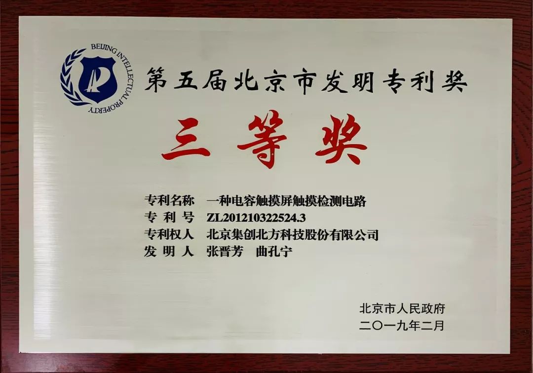近日,第五屆北京市發(fā)明專利獎(jiǎng)共評(píng)選出獲獎(jiǎng)項(xiàng)目36項(xiàng)。北京市發(fā)明專利獎(jiǎng)是北京市政府為表彰在本市行政區(qū)域內(nèi)具有重大經(jīng)濟(jì)社會(huì)效益的發(fā)明專利而設(shè)立的專項(xiàng)政府獎(jiǎng)勵(lì)項(xiàng)目獲獎(jiǎng)專利具備技術(shù)水平高、經(jīng)濟(jì)效益好、具有市場(chǎng)競(jìng)爭(zhēng)能力等特點(diǎn)。集創(chuàng)北方的專利《一種電容觸摸屏觸摸檢測(cè)電路》獲頒三等獎(jiǎng)。