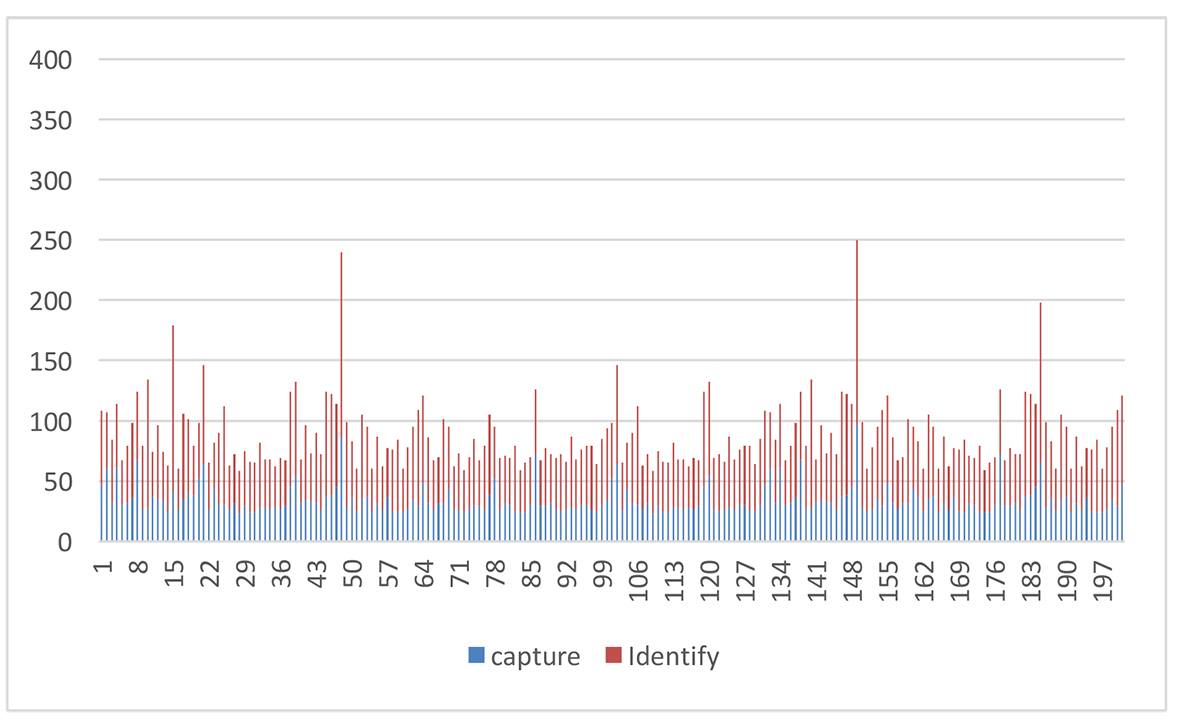 測(cè)試方法:測(cè)量手指按下到算法完成比對(duì)的時(shí)間,連續(xù)多次后匯總。