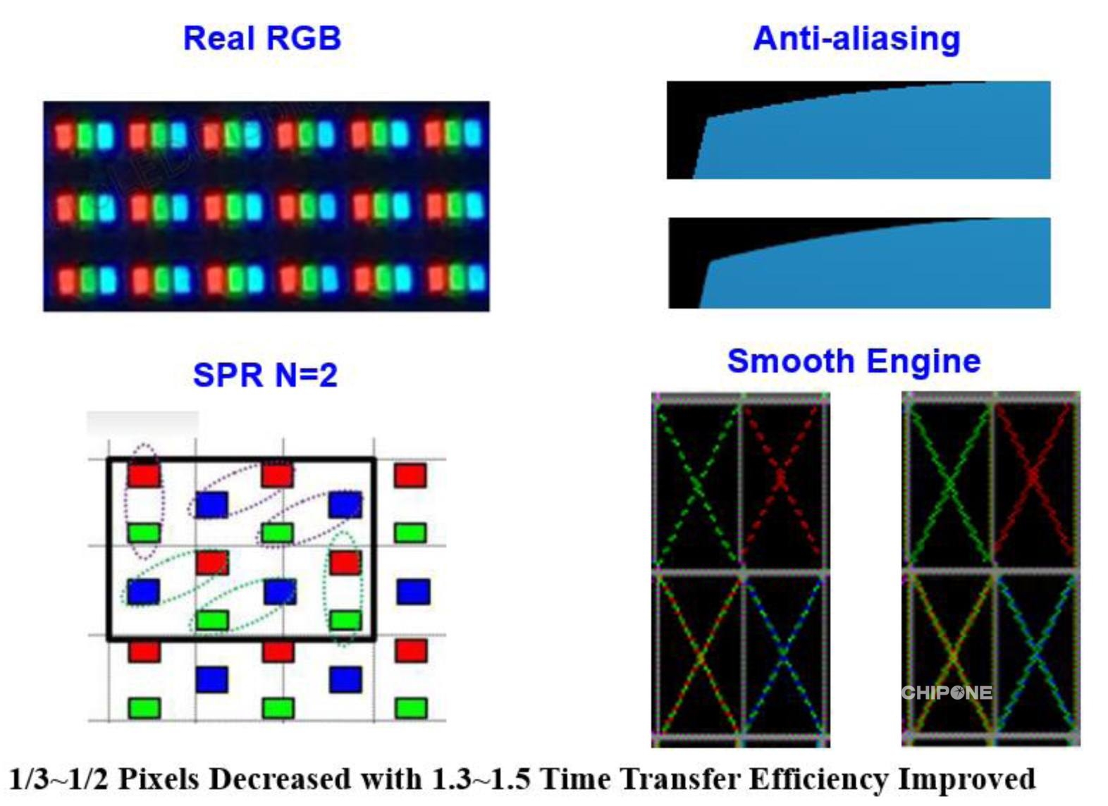 針對(duì)Micro LED最重要的也是最令業(yè)界頭疼的巨量轉(zhuǎn)移問題,集創(chuàng)北方從IC設(shè)計(jì)方面不同的維度思考,提出了將SPR(sub-pixel rendering)子像素排布方案應(yīng)用于該技術(shù)。