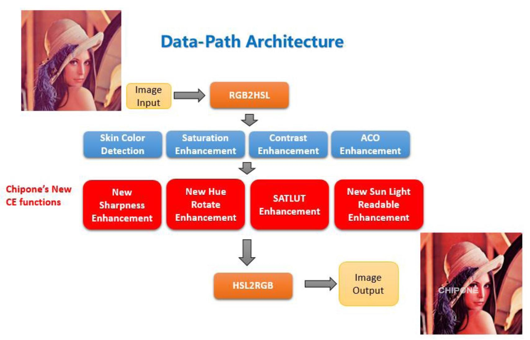 在色彩補(bǔ)償方面,IC可以提供包括Sharpness, HUE, saturation, contrast在內(nèi)的色彩影響提升算法,使得面板呈現(xiàn)出更為生動(dòng)的圖像。Sun light readable算法則為面板在陽(yáng)光下的可讀性提供了有效的保證,提升了強(qiáng)光下的視覺品味。