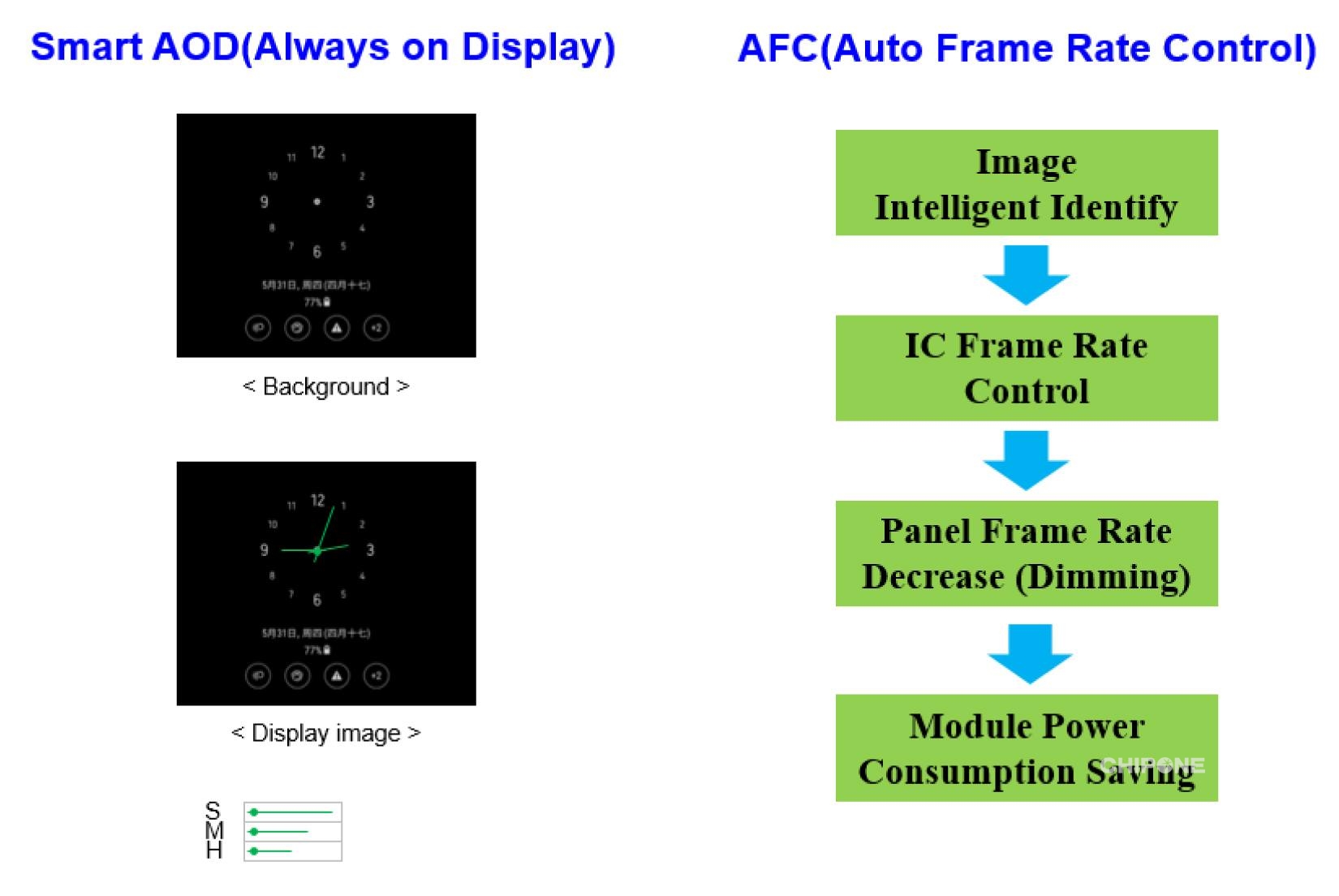 在省電方面,IC還做了特殊的設(shè)計(jì)方案,Smart AOD功能使得面板在待機(jī)模式并顯示時(shí)鐘時(shí)達(dá)到最優(yōu)的省電效果。