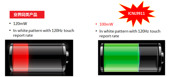 通過自有的低功耗架構(gòu)設(shè)計,ICNL9911具有智能SD/GIP EQ功能,能夠?qū)崿F(xiàn)動態(tài)SD驅(qū)動控制,對各模塊實現(xiàn)精細(xì)功耗管理,并在各種功耗模式下內(nèi)置多種靈活的配置可供選擇。在相同工作模式下,與業(yè)界同類產(chǎn)品相比,功耗顯著降低。