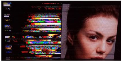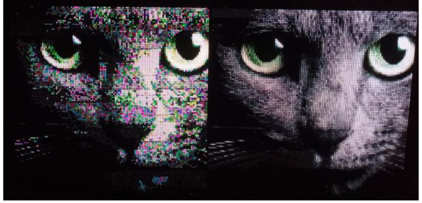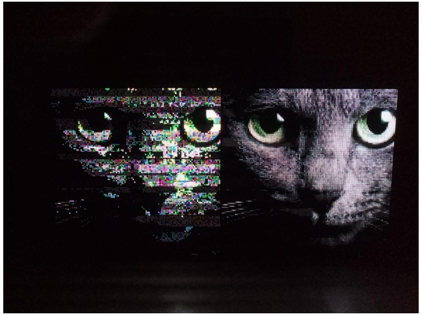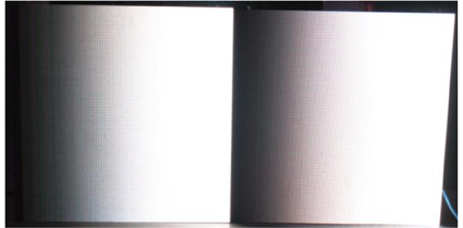 2. 雙鎖存產(chǎn)品部分照片沒有出現(xiàn)掃描線,說明刷新率足夠,但仍然出現(xiàn)了嚴(yán)重的顯示失真(如圖二,圖六)