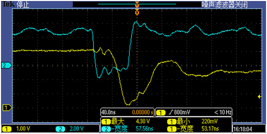 通過給相同脈寬的56nsOE信號(hào),對(duì)比打開波形: